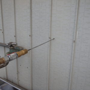 予防消毒を豊後高田市で 豊後高田市の田染地区にお邪魔して、予防消毒の工事でした。こちらは50坪を越える大きなお宅です。十二畳の和室が二部屋もある豪邸です。(うらやましい)外回りの工事をしてたら、スズメバチが営巣してました。消毒のついでに巣も撤去し、お客様にも喜んでいただけました。トタン壁に穴を開け、壁の中にも薬剤を入れ、コーキングで穴埋めしました。ということで、本日もありがとうございました。